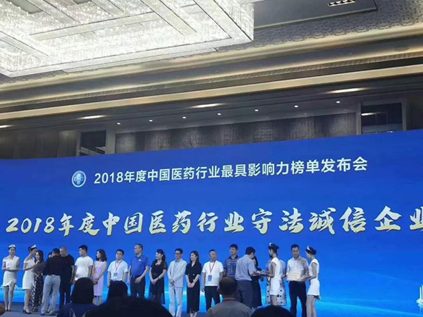 云南騰藥榮膺“2018年度中國醫(yī)藥行業(yè)守法誠信企業(yè)”。